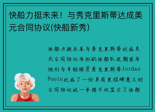 库里:勇士队迎来全新篇章,未来成就充满无限可能 2024年,NBA迎来了新的赛季,许多球队都在经历着不同的转型与变化。在这其中,金州勇士队的未来发展,尤其是以斯蒂芬·库里为核心的球队变革,受到了极大的关注。勇士队的历史虽然辉煌,但随着阵容的变化、球员的老化以及竞争对手的崛起,球队迎来了全新的篇章。而...